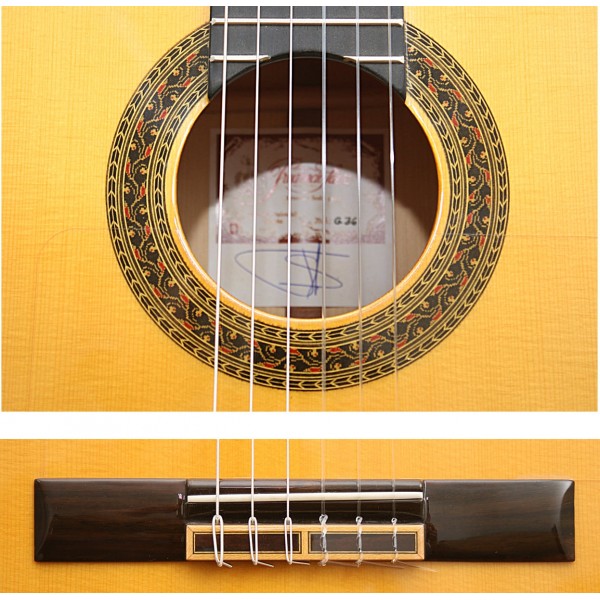 Guitarra flamenca construida 100% en España. Acción super baja y sonido claro, potente y muy flamenco. Rasgueos redondos y sonido solista de primera categoría.| Tapa | Pino Abeto macizo |